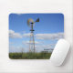 En Kansas landkvarn som skjutas ut i landet med blå himmel, vitmoln, gräs och kvarn.
