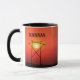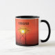 Ett skott av en Kansas Red Sunset med en Power Line-silhuett med poler. Med en gult ring runt Sol som ligger norr om Nickerson Kansas USA på en COFFEE-MUGG.