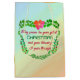 Med den här designmallen kan du skapa din egen text, anpassa den till kostym efter dina behov. Utformningen visas som julcitat "MAY PEACE BE ERA GIFT AT CHRISTMAS OCH DIN BLESSING HELA ÅRET GENOM" med rött och grönt färg omgiven av grönt löv, blommigt och rött bär med speciell bakgrund. Det är en elegant- och söt-design så att den passar din Julafton-gåva. Jag använde färgmålning med digitala vattenfärger.