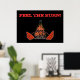 En underbar poster för varje allvarlig viktningsapparat! Den har en tyngd pub med eld runt den, med frasen "FEEL THE BURN!" skriven på den. Motivering, övning, Gym.
