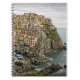 Behålla dina anteckningar och bilder som organiserats med den här anteckningsboken och bilden från Cinque Terre i byn Manarola som viftade med klipporna som förbisåg Medelhavet.