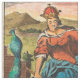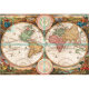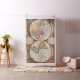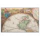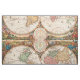 Kort världskarta från 1700-talet med hemisfär i vintage färg och målande vinjetter i gräns.