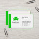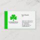 En enkel modern visitkortdesign med ett irländskt St Patrick tema. Färgtemat upprepas också på baksidaen. Redo för att skräddarsy. Shamrocklogotypen och ändras eller byts ut också, om krävd. Press som skräddarsy knäppas för att tillfoga, ta bort eller ändra objekt. Detta kort kunde också anpassas för använda som en st patrick's dayhändelsereklamblad, inbjudan eller biljett eller kunde vara passande för en variation av affärer, frånsett kanske att charma för orm som gavs att St Patrick sägs för att ha landsförvisat alla ormar i Irland och det inte finns några ormar i Irland till denna very dag:),