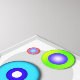 En regnbåge med färgcirklar mot en flertonscirkel med grått ge denna design, en retro, sextusen inspirerade pop Art-utseende men i contemporary stil. Fullständigt anpassade och konfiguration så att du kan anpassa dig till din egen.