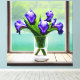 Kanvastrycket Colorful Iris Glass Vas by Window har ett fantastiskt digitalt målat konstverk, perfekt för vilket rum som helst i hemmet eller på kontoret. Ni kan vara säkra på att detta arbete är ett originellt koncept och ett slags sådant. Tvätta vilket rum som helst utan att göra något med våra vackra arrangemanga utskrifter.