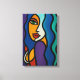 En slående popkonst porträtt av en kvinna med djärvt linjer och pulserande färg i en modern abstrakt stil. Den här öga-fångstarbetsytan är en perfekt för att lägga till energi och kreativitet i vardagsrummet eller studion.