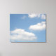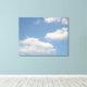 Det här kanvastrycket i fantastisk har ett foto av några flytande vita klumpar som flyter i lugn och ro över ett vackert blå himmel.