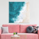 Tropiska beachningen vid kusten med surfare Skriv ut med akvblått och sankt vitt färg av ett vackert tropiskt hav, vinkart och sand. Kuststranddekoration med kristallklar skal av vatten och havsskum av akvarieblåsor, vita och sandiga neutralter. Denna moderna kustkonst är en biet av snyggtens stranddekoration, tropisk väggkonst, kustdekoration, för alla kusthem, strandstugor och havsbottnar.