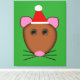 Det här kanvastrycket i fantastisk har en rolig tecknad av en julmus med stort runt ögon, rosa öron, liten rosa näsa och söta små, små, tjusiga whisky. Mus bär ett rött och vitt jultomtehatt-redo till jul.