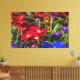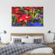 Ett upplopp med färgat vår blommor i ljust rött, blått, lila, rosa och orange. Fokus ligger på en krimsblomma i förgrunden, med ett regn av blommor som omger den. Denna 3D-blomsterträdgård med flera färgader skapades i Vue.