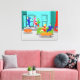 Det här Kanvastrycket Retro Classic Television Stretched tar dig tillbaka till en enklare tidpunkt. På 1960-talet i stil, minimalistiskt, tecknad teckning kommer ni att få tittar det inledande kredit. Konstruktionen visar ett modernt, svalnat, levande rum med teal- och turkockväggar och en röd, konformad kamera, komplett med en brinnande eld. Alla ögon är på lanky, husets man när han gör sitt stora entré. Den stilige Mister bär blå kostym och orange slips. Hans underbara fru och energiska, unga son skyndar sig att hälsa honom. Dam i huset bär en shock rosa, en sjökort, som hon fyller ut i hela höger ställe. Spetsen i hennes mörk hår är ren perfektion. Junior bär en röd skjorta och blå jeans för att se om hans far har gett honom någonting. Oj! Knip inte över krukväxten, Junior! På lägre nivå kan vi se en grönt soffa och en orange kaffe bord. Vänta! Vi verkar ha gäster! På soffan sitter en mörk i blå kostym och röd slips, bredvid en blond kvinna i en röd klänning med rött knä i håret. Hej! Det är Pappa arbetare. Hur kom de dit först? Det är en av TV:ns eviga mysterier. Det verkar som om vi alla är redo för en underbar kväll in sitcom suburbia. Men först måste vi se om Pappa åker till resa över orangen Ottoman eller kringgår den med lite fotarbete från finare. Åh, odugligheten! Det enda sak som saknas på scenen är temat sång. Och om du lyssnar noga kan du nog höra det i ditt sinne.