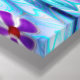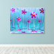 En digital teckning av söt stiliserad lila blommor med strålande röda centrum. De kissar på dig från det höga gräset bredvid en bassäng av tydligt upprivande vatten.