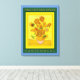 VINCENT VAN GOGH ...SUNFLOWERS Kanvastryck ... Vincent van Gogh Sunwers Painting (repetition av den fjärde versionen, gultens bakgrund, augusti 1889, mindre än ett år före hans död vid 37 års ålder genom självmord ... sköt sig själv i bröstet i ett vete fält som han hade målat ... 30 timmar senare) Faux-Kanvastrycket ... Vincent Willem van Gogh (den 30 mars 1853-29 juli 1890) var en viktig nederländsk postimperialistisk målare som har blivit en av de mest berömdarna i konsten. Under sin egen livstid betraktades han som en galning och ett misslyckande ... ingen som köpte sina målningar ... men efter sin tragiska död blev han berömd och uppskattad som Typiskt torterad konstnär.. så att hans målningar nu är värda flera miljoner. Enligt hans bror Theo var Vincent sista ord "Trögheten kommer att vara för evigt". Hans solrossserie inleddes i augusti 1888 i väntan på att hans vän den berömd målaren Paul Gauguin skulle besöka honom i Gulten House (i Arles, Frankrike) där han fyllde ett rum med sina ljusa solblommor och hoppades att Paul Gauguin skulle bli imponerad nog att stanna där med honom ... vilket Gauguin faktiskt gjorde. Detta gav van Gogh underbar hopp och passion att måla ännu mer. Gauguins enda målning där var Vincent van Gogh "The Painter of Sunblommor" ... Men i december började deras förhållande försämras, van Gogh, som var desperat orolig för att Gauguin skulle lämna honom att sluta med att skära av en del av sitt eget lämnat öra med en rakhyvel efter att Gauguin hade lämnat "för en promenad" och inte kom tillbaka den natten. Sedan slog van Gogh in örat och levererade det till en kvinna på en bordell som de två manar hade besökt. Gauguin lämnat då till och med som van Gogh bad om honom. I maj 1889 gick Vincent van Gogh frivilligt in i en asyl där han fortsatte att måla ... i synnerhet ytterligare versioner av sina tidigare verk som t.ex. solblommor. Senast maj 1890. Vincent van Gogh flyttat till Paris suburb Auvers-sur-Oise för att närma sig sin bror Theo och hans doktor-vän dr Paul Gachet. Där målade han Wheatfield med Kråkor och man tror att det var i fält där han sköt sig själv i bröstet den 27 juli 1890. Han dog den 29 juli 1890. Hans namnteckning och den här duken gräns är i kornblomsblått... ett färg som han har anslutit sig till här. Observera att endast en solros i gruppen har kryddblått på den ... som representerar honom och hans ensamhet.