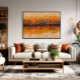 Jordnära nyanser och orangea fläckar kolliderar över vita rutnät, symboliserar spänningen mellan ordning och instinkt. En kontrollerad explosion som provocerar och utmanar uppfattningen.