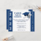Tema Inbjudan till studenten, Kap & Diploma, med klassår och studentfest i Mörk blått och vit. Inbjudan är bl.a. student namn. Kortet kan vara personlig med din egen bilder, teckning osv.