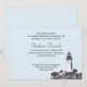 Ett utsökt begravningsannonskort med fyr-motiv på en serene himmel blå bakgrund. När man firar minnen från kustdagar, fångar detta på ett vackert sätt ett liv som mutar med äventyr.