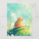 Den här hjärtvärmande designen visar en otroligt söt kapybara som står stolt på toppen av en frodig, levande grön kulle. Renderad i en mjuk, texturerad akvarellstil har kapybaran luddigt gyllenbrunt och tanfärgat päls med ett milt, nyfiket uttryck när den tittar upp mot den ljusa himlen. Figuren är placerad bland en mångfaldig åker av handmålade vilda blommor i glada nyanser av vitt, blått, orange och gult. En fantasifull virvel av gröna blad och gula blomblad dansar i luften runt djuret, medan bakgrunden är fylld med mjuka, måleriska blå och vita moln som skapar en känsla av höjd och lugn. Den övergripande estetiken är ljus, optimistisk och full av naturlig charm, vilket gör den till ett oemotståndligt val för alla som älskar exotisk vilda djur och mysig djurkonst.