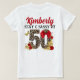 Sassy vid 50! med den här 50:e födelsedagstexten T-skjortan med centrerat kapitel 50 med leopard Print Number 50. "Kapitel 50" text med röd läppstift kyssande läppar, guld-fjäril, med rött och guld ro och en stor röd robbon på 0. Lägg till din egen text längst fram och bak i skjortan. Meddelande mig om ytterligare färg för design. ©2022 Miss Sassy Party Designing
