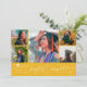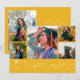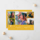 Modern och enkel examensannonserings fotokort med 5 bilder på framsidan och 1 på baksidan. Den handskrivna texten säger "Kapitel Avslutat". Lägg till examenstudentens namn, information och meddelande för att anpassa detta kort. Gul färg.