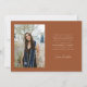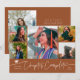 Modern och enkel examensannonseringsfotokort med 5 bilder på framsidan och 1 på baksidan. Den handskrivna texten säger "Kapitel Avslutat". Lägg till examenens namn, information och meddelande för att anpassa detta kort. Terracottafärg.
