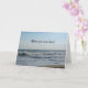 Vackra strandscen där vågar kraschar in i stranden i fallet, Cape May, NJ. Önskar att du var här. Sätt i texten på kortet. Anpassa framsidan/insidan av det tomma kortet med ditt speciella meddelande. Baksidan har Cape May Lighthouse. Originalfotodesign © TamiraZDesigns.