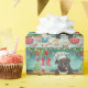 Fånga helgdag glädje att baka med den här härliga scenen med en glad kock omgiven av julgransar och festliga dekorationer. En hjärteberande firande av årstidens sötaste traditioner.
