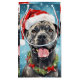 Färgfull och glatt juldesign med en Käpp Corso med en julhatt.