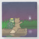 Den här underlägg har teckning på kappa och en kitsune bakifrån, tittar på ett hitodama som flyter över en damm i skymningen. Denna underlägg är underbar för ett fläkt av japanskt yokai, men tecknen kan också passera som en sköldpadda och räv, för dem som inte känner till dessa mytologiska varelser.