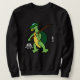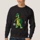 Kappa som går och håller en fiskedja och fisk lång ärmad tröja