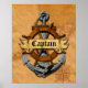 Lämna utan tvivel vem som är kapten, med en klassisk vintage frakts hjälm och ankare. Kaptenen kan bytas ut för att ta emot alla rankor eller namn i er fartygsbesättning. Bakgrunden är en vintage nautiska karta i Florida Nycklar med kompass ro.