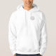 Personlig kapten med ditt namn och namn sjömansskjorta med logotyp, vit hoodie-tröja. Vit cirkelemblem med marinblå ankarpunkt och text- och sjögränser. Framsida vänster.