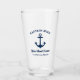 Pintglas av nautisk anpassningsbar har ett båtankare i stil vid kusten med snyggtens typografi. Anpassa texten till namn om kaptenen, båten namn och platsen. Gör en roligt till en unik gåva till båtägare. Det klassiska systemet för blått färg i flottan kan ändras.