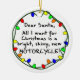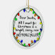 Rolig motorcykelprydnad för julafton. Kära Santa, all som jag önskar för jul, är en ljus, skina ny motorcykel! Den uppsluppna humordesignen som omges av mång--färgad jul, tänder.