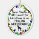 Kära Santa, all som jag önskar för jul, är en italiensk vinthund! Roliga helgdaghund älskareprydnadar och andra objekt är ringed i en stränga av färgrikt julaftonljus och en liten teckning av hund aveln av ett barn. Extremt gulligt, perfekt som inkluderar din italienska vinthund i julhelgen.