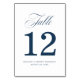 Lägg till en personlig touch till din bröllopsfest med våra älskade bordnummerkort för bröllop. De eleganta bröllopsbordnumren har en vacker marinblå skrivstil och platshållare för ditt bordnummer, namn och bröllopsdatum.
