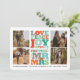 Kärlek Fred Glädje Pussar Vår Första Jul Som Herr & Fru, Färgrik Och Djärv Typografi, Nygifta Pars 1:a Jul, 4 Foto Collage Jul Högtidlig Bröllops Annonserings Kort.