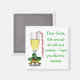 Roligt lite julmagnet, med en anteckning till tomten. Ett festivt dekorerat glas från vin, med guld och en sprit av holly, på stjälken och candy cane på kant, dekorerar denna magnet från roligten helgdag. Ett sött meddelande till tomten, kära Santa, vi är ute ur mjölk och kakor, jag hoppas att du gillar det här istället. Anpassa om du vill att texten ska säga något annat.