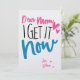 Kära Mamma, jag hämtar det nu, Anpassningsbar Mors dag Card. Cute Funny och UNique-kort för mamma. Personlig Mors dag Card med lustigt ljud, Slogan "Bästa Mamma, jag får det nu", brev skriver ut design på rosa med vackra hjärtan rosa och blå grafik. Fin kombination av rosa och blått färg. Du kan anpassa med ditt namn och meddelande eller egna namn på kortets framsida eller baksida. Utskrivbart kort eller elektroniskt laddningsbart kort. Snabbhämtning. Ha ett ge mamma-kort för roligt eller inbjudningskort för alla andra händelser och dagar.