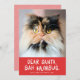Det här roliga fotokortet för husdjur har hälsning "Kära Santa, Bah Humbug" med ett nästan kvadratiskt foto. Färg är rött och vitt, men kan ändras till vilket färg eller vilken som helst (till och med hälsning). Det är perfektens utformning för vilken djurälskare som helst! Det fungerar mycket bra med ett färg eller ett svartvitt foto. Tips! På baksidan kan du lägga till ytterligare ett foto eller till och med lägga till mer text. Se vår samling med helgdag-fotokort för husdjurstema för mer design!