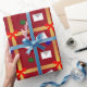 Bli inklämd i helgdag med den här julklappen! Med klassiskt rött och guld visar det vita brev som är adresserat till tomten, vid sidan av glansig grönt och blå prydnadsföremål, som alla är bundna med en ljusröd båge.