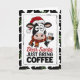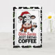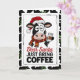Det här festliga vykortet visar en trött men älsklig ko i tomteluva och med en kaffekopp i handen med budskapet Kära tomte, ge bara kaffe. Perfekt för kaffefanatiker, tidiga risare och alla som överlever julhetsen med en varm kopp i handen.