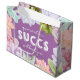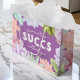 Social avstånd har ner dig? Ge en vän, släkting eller älskad en med lite hemmabruk i den här söta och humoristiska presentväskan. Utformningen har pastellfärgsplantor som omger ord "karantänen lyckas utan dig" på lila bakgrund.