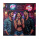 A funny comic picture of friends singing karaoke at a dive bar, having fun, getting drunk, being silly.