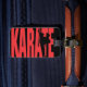 Ord Karate i rött med en martialartist i en sparkad silhuett.