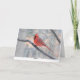 Ljusrött nordekardinal står på ett hälsningskort. Perfekt bild för helgdagar, jul, födelsedagar eller tillfälle! Matchande porto är snart tillgängligt här (samma bild). Tom inuti, anpassa meddelandet med många teckensnitt stilar och brev. Underbar för massutskrift för kontor!