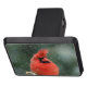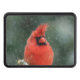 Kardinal i gräs träd under stormen snö dragkroksskydd