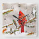 Kardinal i gräs träd under vintern fyrkantig klocka