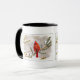 En manlig kardinal invigd på en vinterdag i kallet i snö fullt i gräs träd. Den här bilden togs av Debbie Quick of Debs Kreativ Bilder. Om du vill se fler bilder från Debbie kan du läsa hennes webbplats på: www.debscreativeimages.com