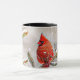 En manlig kardinal invigd på en vinterdag i kallet i snö fullt i gräs träd. Den här bilden togs av Debbie Quick of Debs Kreativ Bilder. Om du vill se fler bilder från Debbie kan du läsa hennes webbplats på: www.debscreativeimages.com