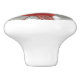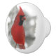 Denna keramiska dörrknopp presenterar en briljant crimson röd kardinal. Han är riktigt kungen av trädgårdfåglar! Här percheds han på en snöig stång som äter för solrosfrö för svart olje- stunder som vintersnön virvlar runt runt om honom.